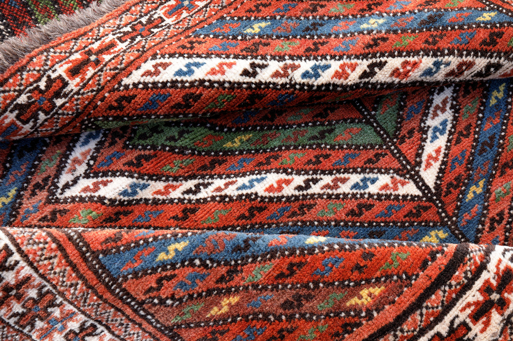 Ein fein geknüpfter Gabbeh-Teppich aus der Region Fars in Südwestpersien. Einmalig schön ist dieses farbenfrohe und fantastisch erhaltene Stück. Der Teppich hat ein verschiedenfarbiges rautenförmiges Muster.