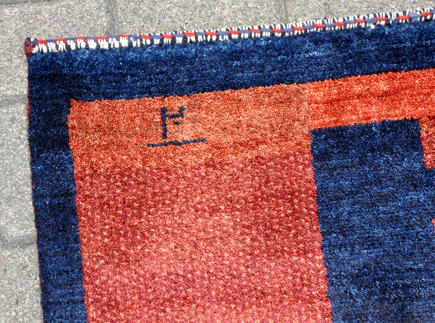 Ein eindrucksvoller persischer Gabbeh-Teppich aus Hochlandwolle geknüpft in der Grundfarbe rot.