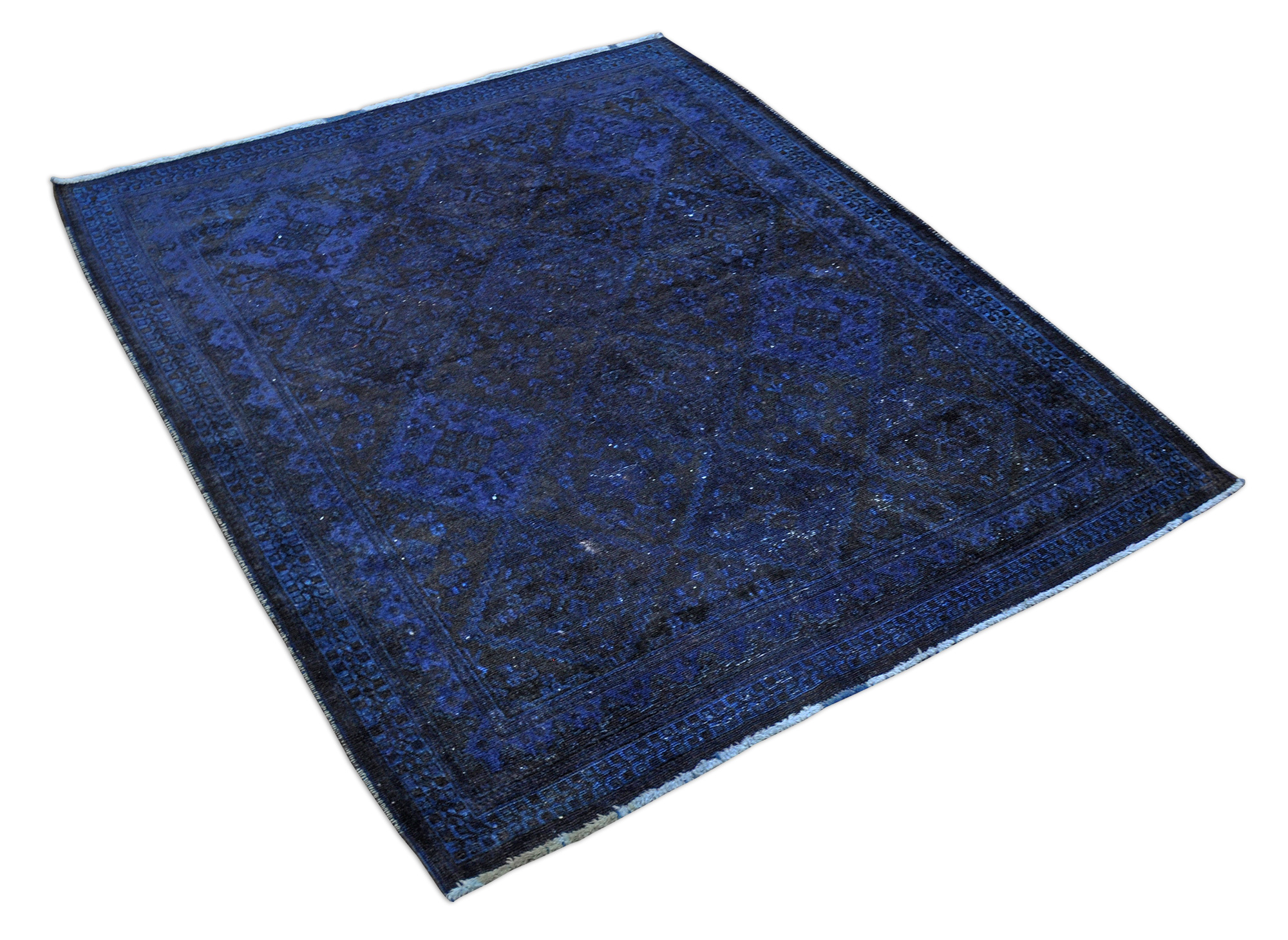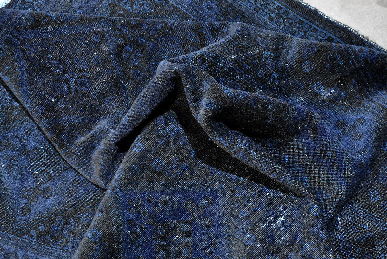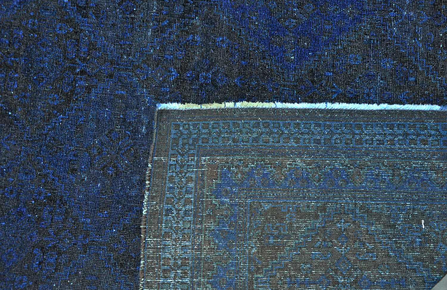 Bei diesem Teppich handelt es sich um einen mehr als 50 Jahre alten blau überfärbten Ghashgai Perserteppich im Vintage Look. Ein sehr dekoratives Stück.