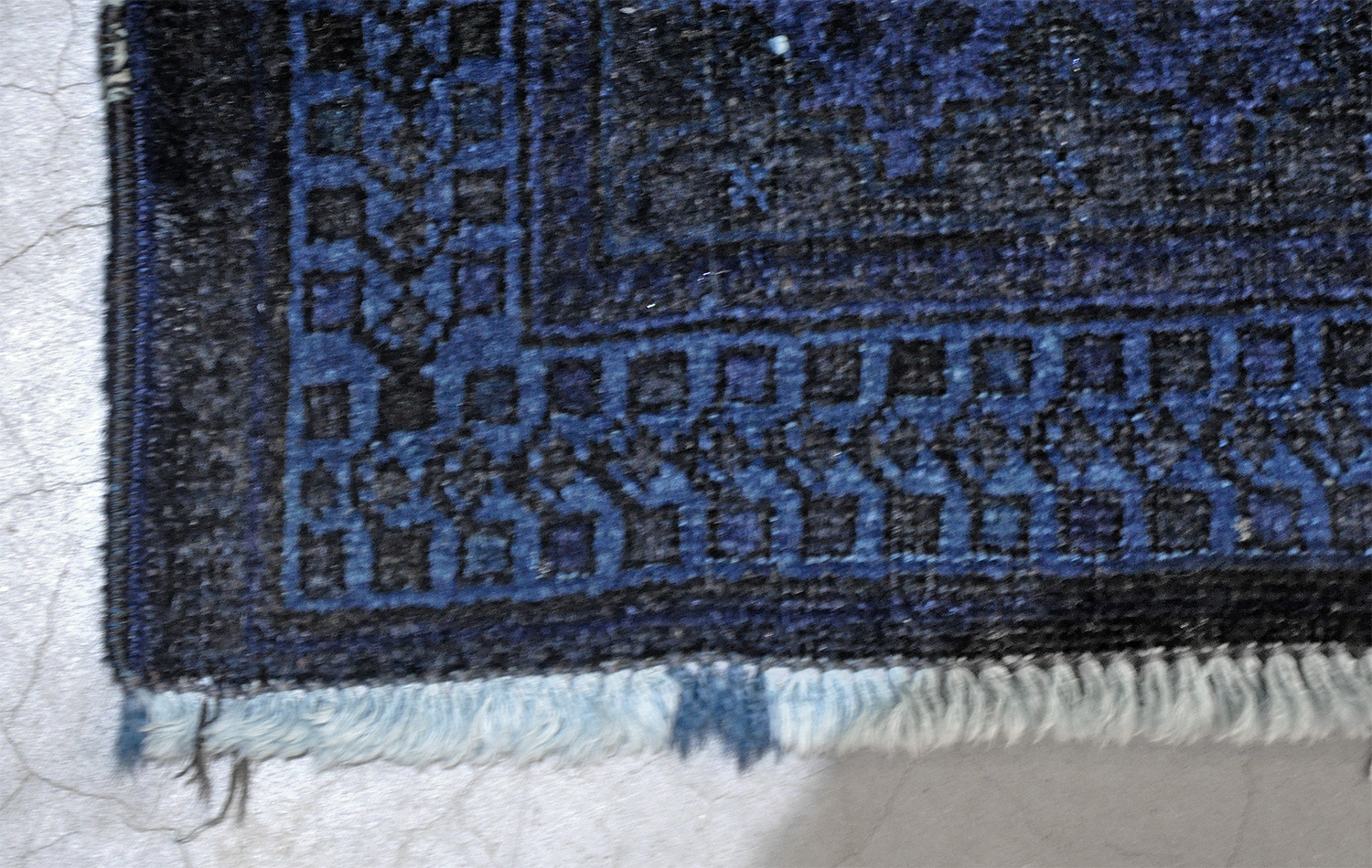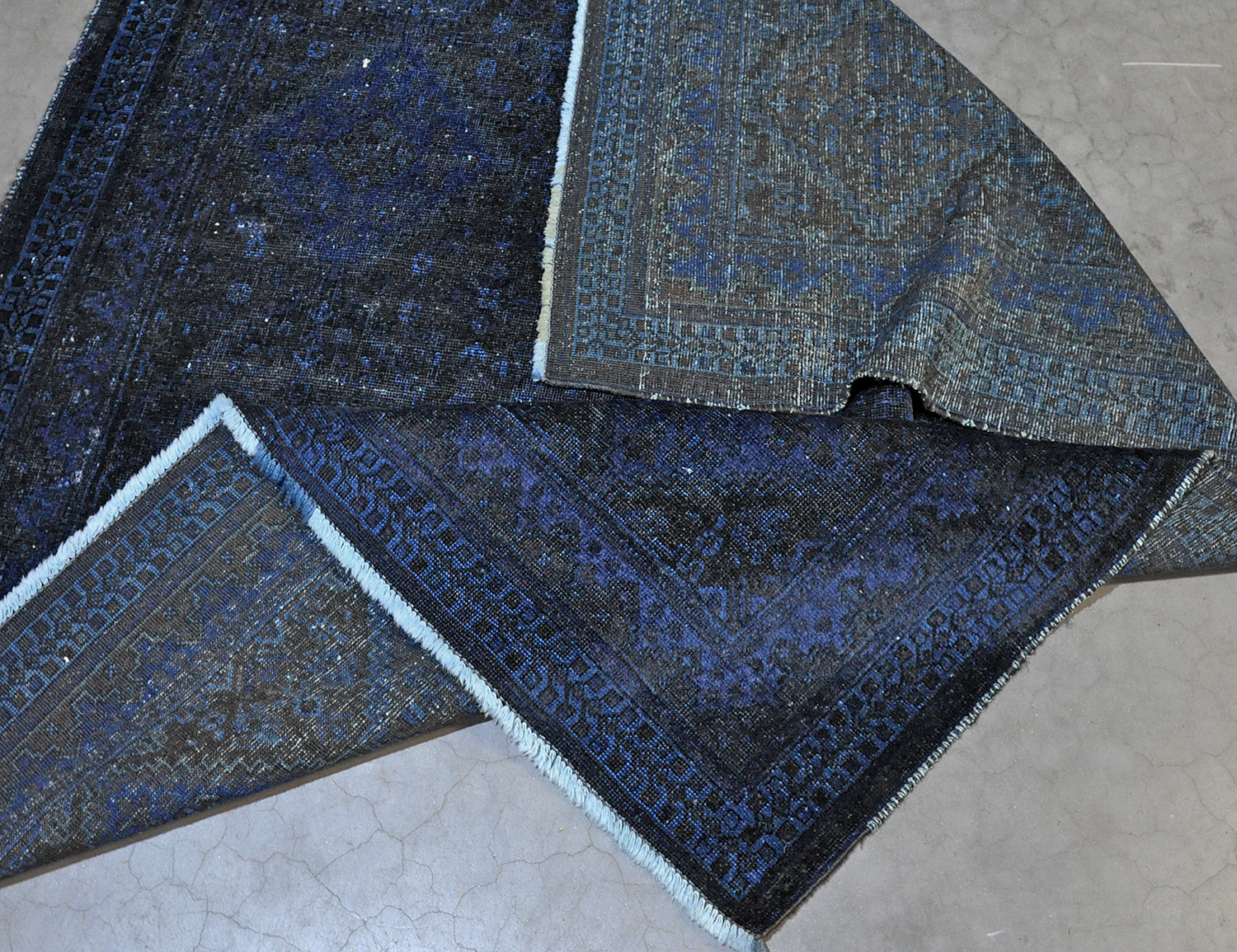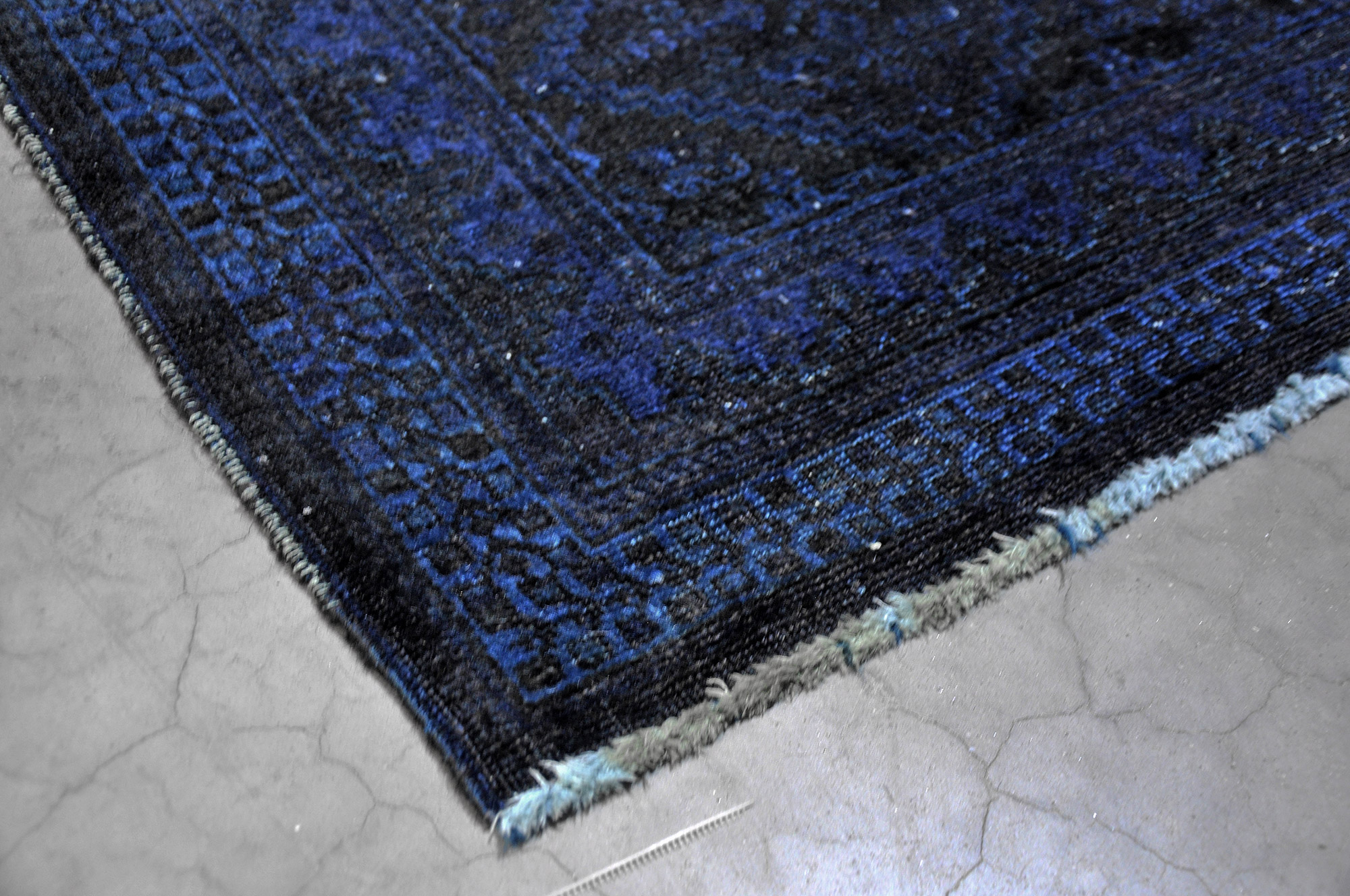 Bei diesem Teppich handelt es sich um einen mehr als 50 Jahre alten blau überfärbten Ghashgai Perserteppich im Vintage Look. Ein sehr dekoratives Stück.