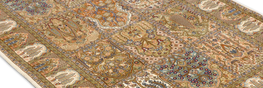 Aus der „heiligen“ Stadt Ghom kommend, waren traditionelle Ghom Teppiche häufig Gebetsteppiche. Die Feinheit der Knüpfung und die künstlerische Raffinesse der Muster, aus verschiedenen Gegenden des Iran stammend, machen den Ghom zu einem der edelsten Perserteppiche.