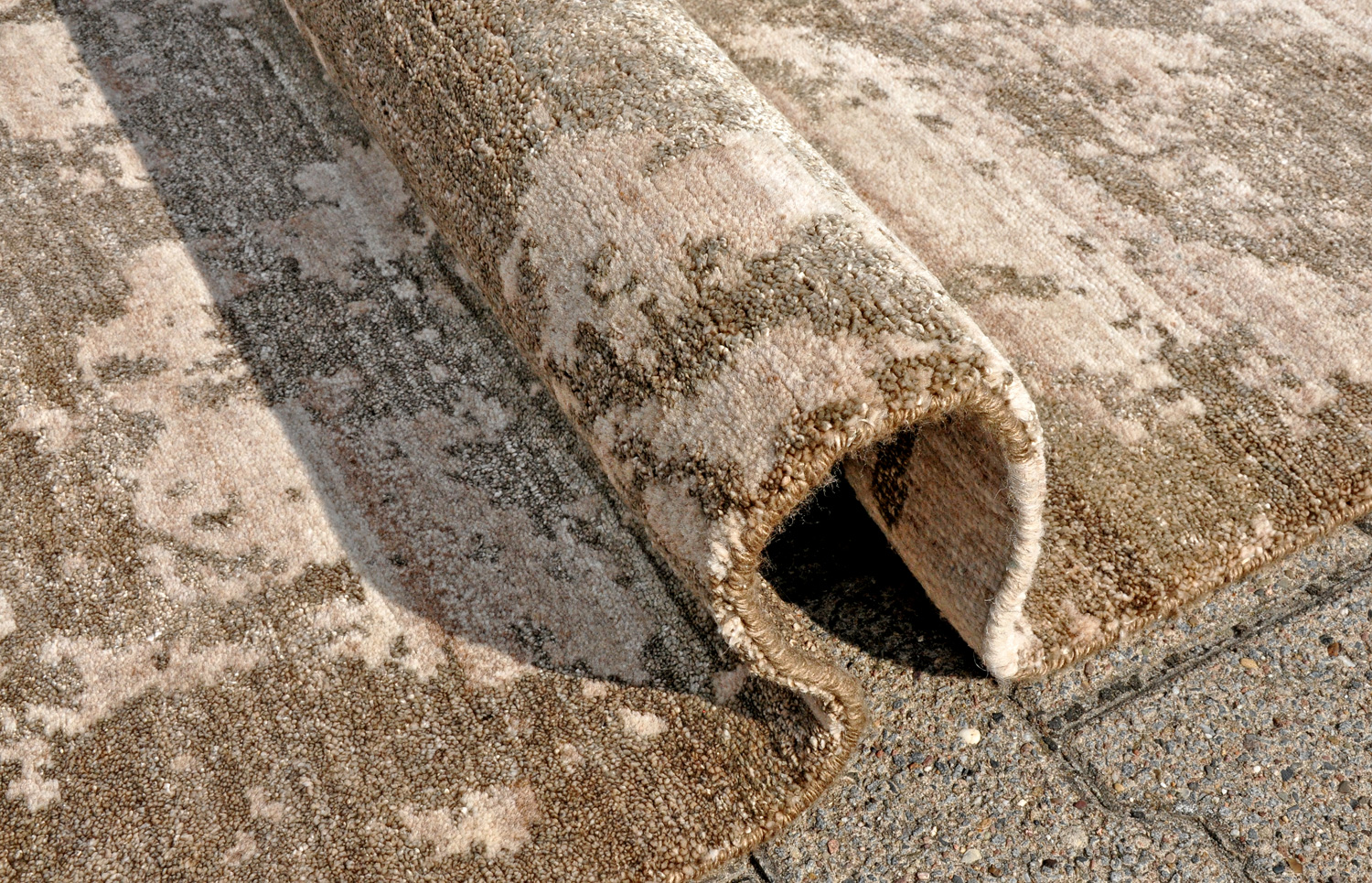 Diesen handgeknüpften Teppich zeichnet neben einer hohen Knüpfdichte der besondere Materialmix sowie eine leichte Hoch-Tief-Struktur aus.