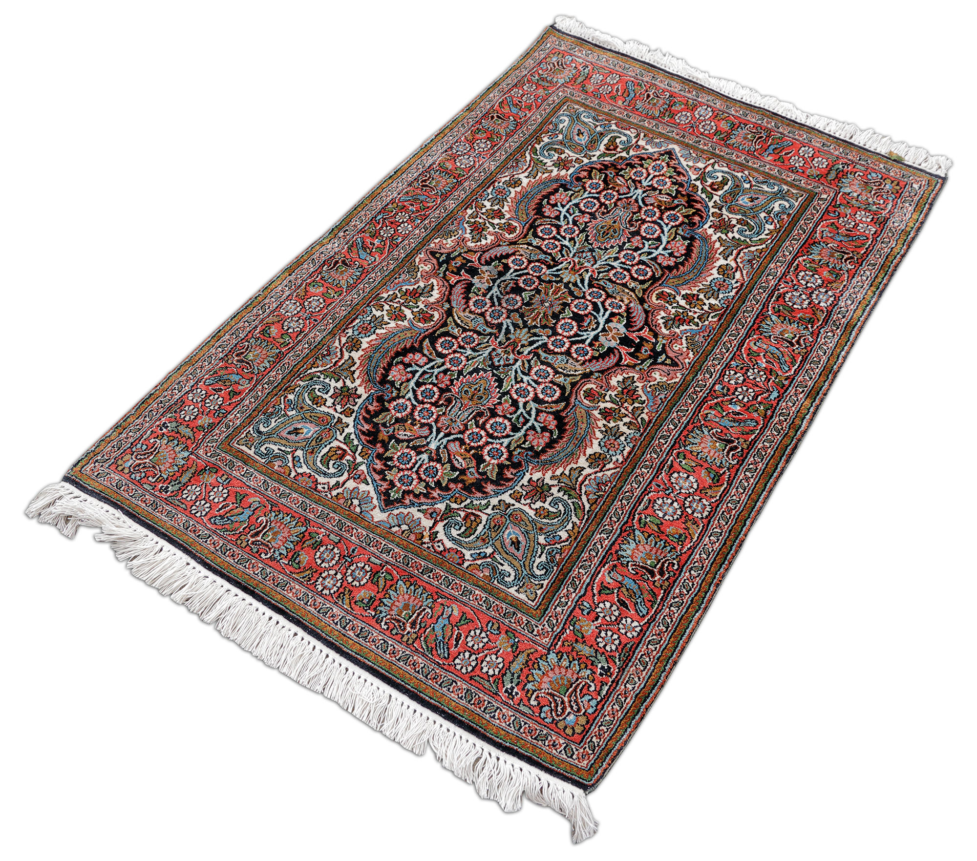 Kaschmir Seidenteppich Brücke Indien | Floral