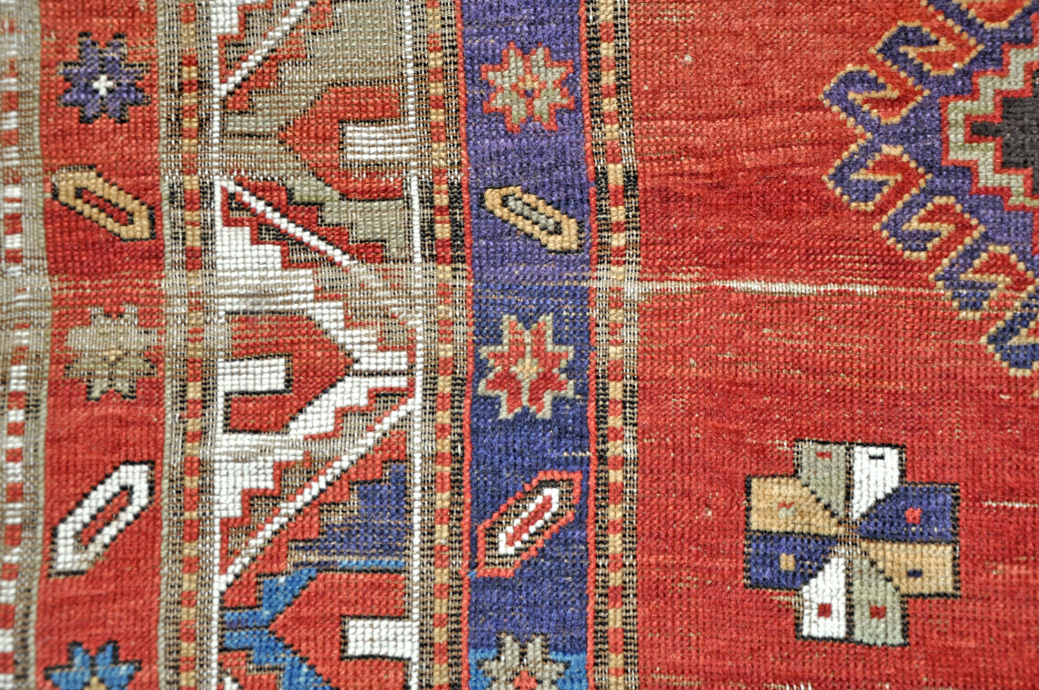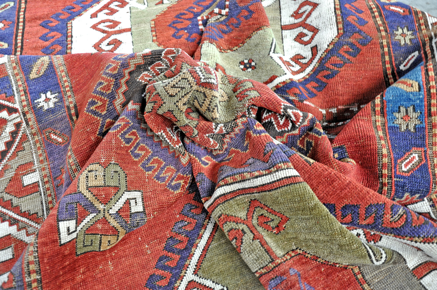 Kaukasische Teppiche unterscheiden sich durch ihre ausgeprägt geometrische Musterung, ihre starke Neigung zur Abstraktion und die Verwendung weniger, aber lebhafter Farben.