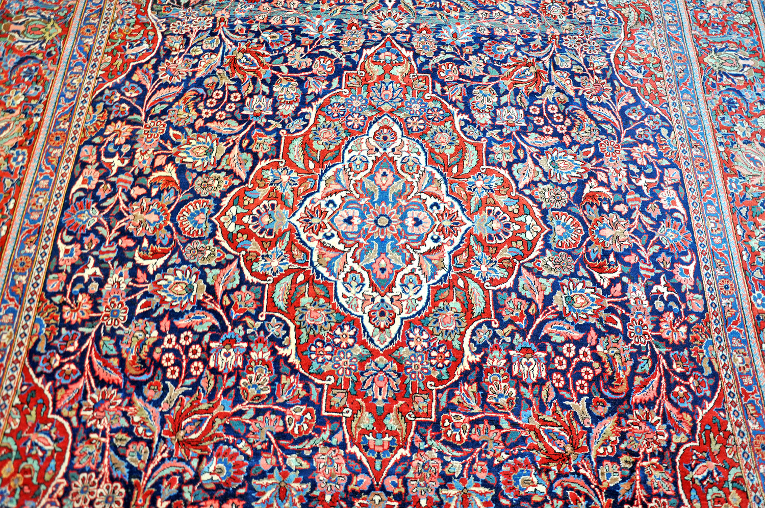 Ein wundervoller, klassischer Prachtteppich. Der niedrige Flor, die feine Wolle und die Perfektion in Knüpfung und Mustergebung machen diesen Teppich zu einem besonders gelungenen Beispiel persischer Knüpfkunst.