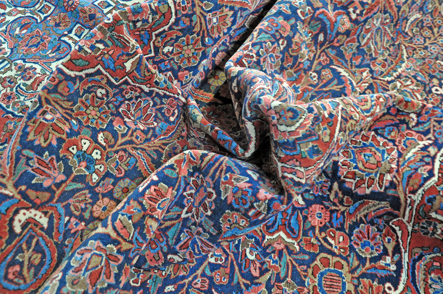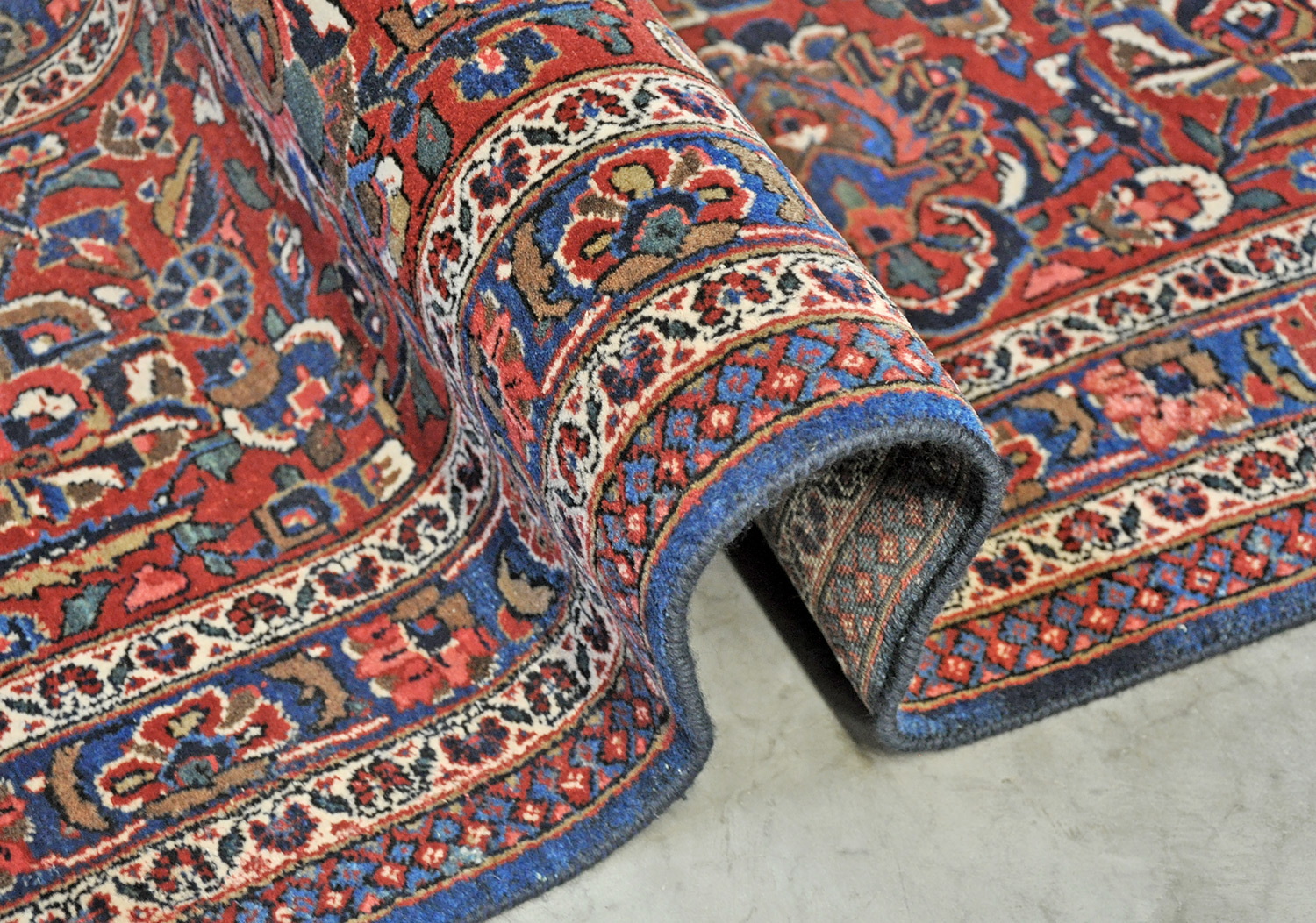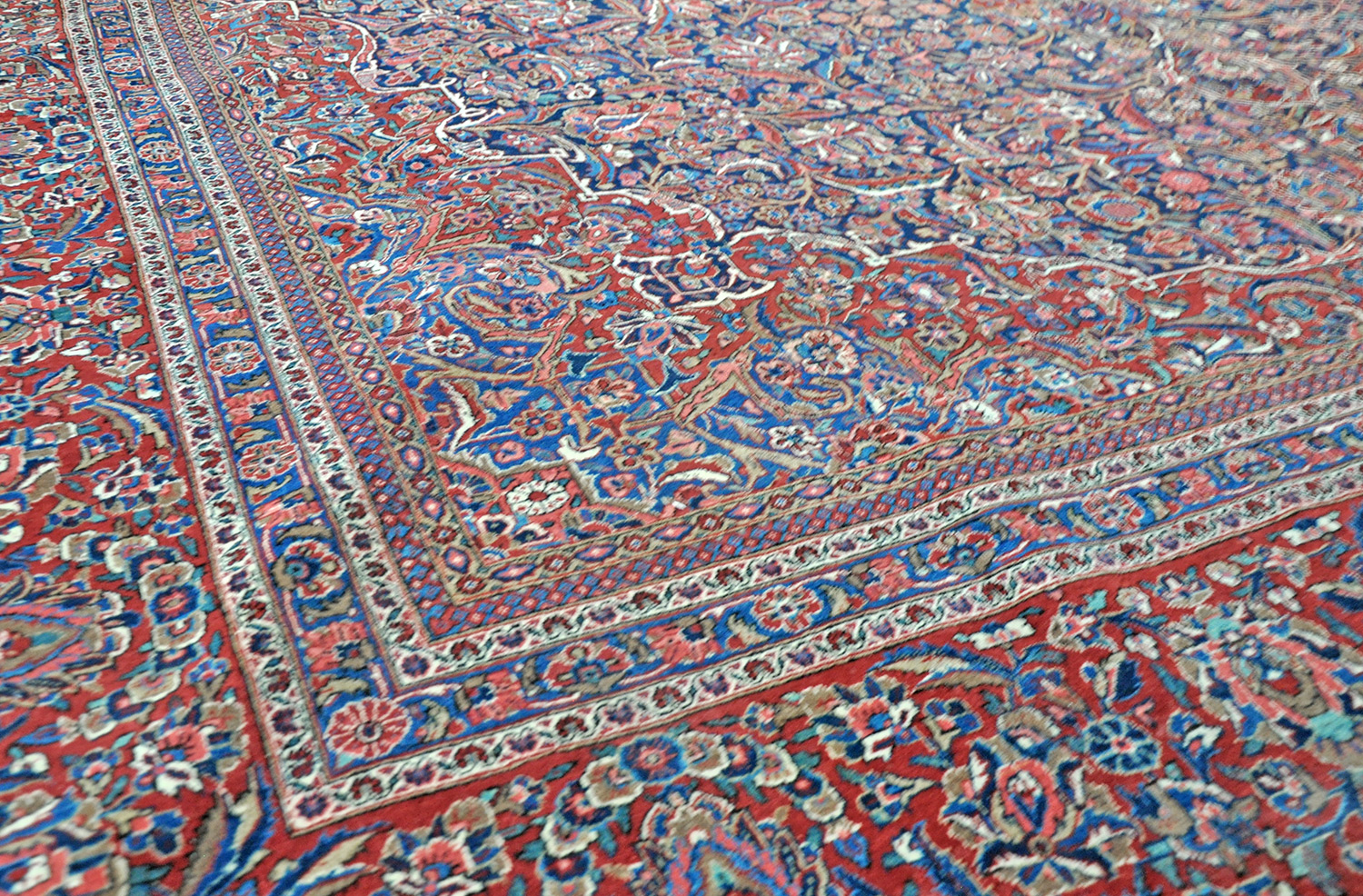Erhaltungszustand: Ein gut erhaltener Teppich; der Flor ist komplett. Auffällig ist eine sehr feste feine Knüpfung in einer fantastischen Wollqualität; es gibt eine nicht sichtbare Reparaturstelle. Ein sehr dekoratives und edles Stück.