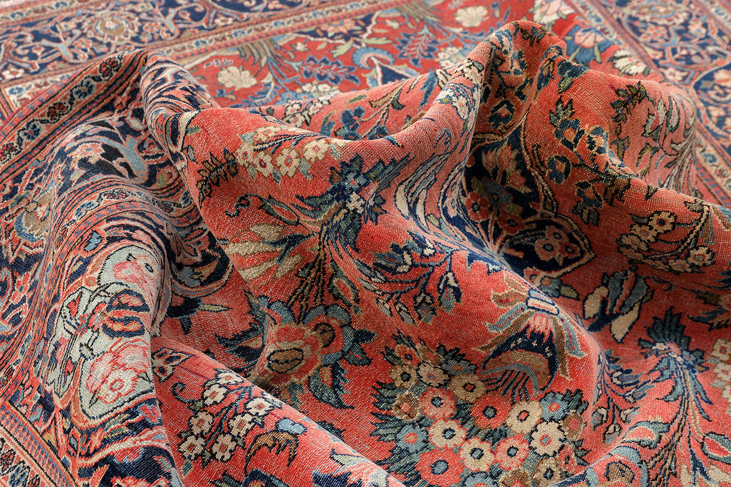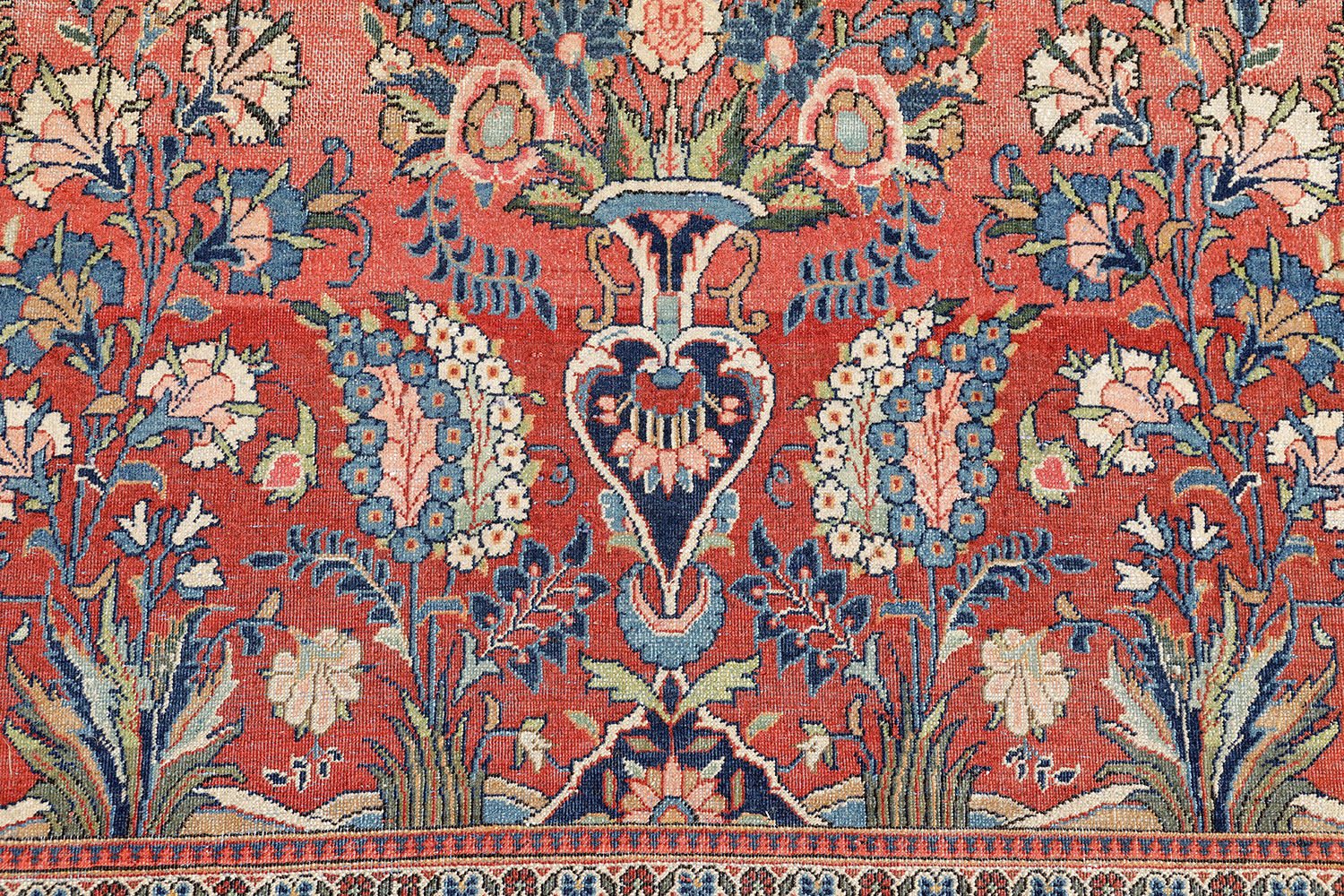 Es ist selten, dass man nach so langer Zeit zwei gleiche Stücke findet, die in Qualität und Perfektion so phantastisch und auch noch so gut erhalten sind. Die glanzreiche, geschmeidige Wolle lässt die fein gezeichneten, bildhaft wirkenden Motive und die ruhigen, besonders stark patinierten Farben besonders schön zur Geltung kommen. Beide Brücken sind sammelwürdige Beispiele für die hochentwickelte Knüpfkunst höfischer Tradition.