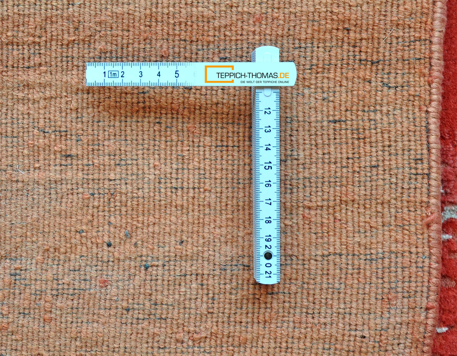 Ein origineller Designteppich aus Schurwolle und Bambusseide, handgeknüpft aus Indien mit einer Knotenzahl von 210.000 kn/qm. Dezente rot - weiß Schwarztöne sowie eine markante Hoch-/Tiefoptik geben dem Teppich eine 3. Dimensionalität.